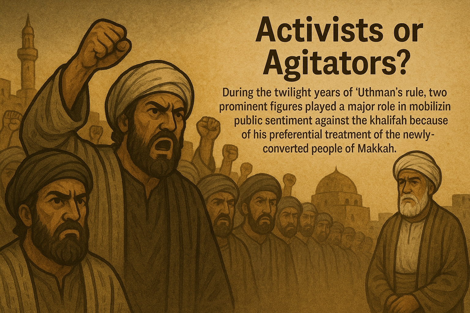 During the twilight years of ‘Uthman’s rule, two prominent figures played a major role in mobilizing public sentiment against the khalifah because of his preferntial treatment of the newly-converted people of Makkah.