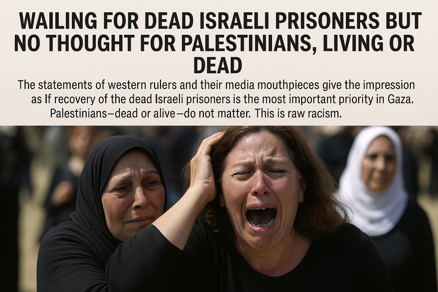 The statements of western rulers and their media mouthpieces give the impression as if recovery of the dead Israeli prisoners is the most important priority in Gaza. Palestinians—dead or alive—do not matter. This is raw racism.